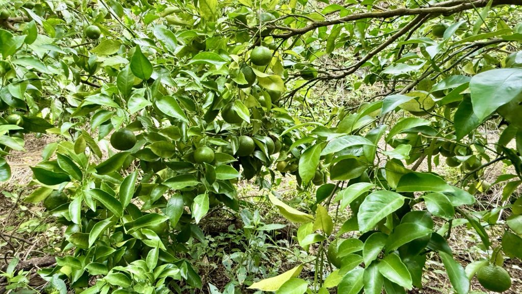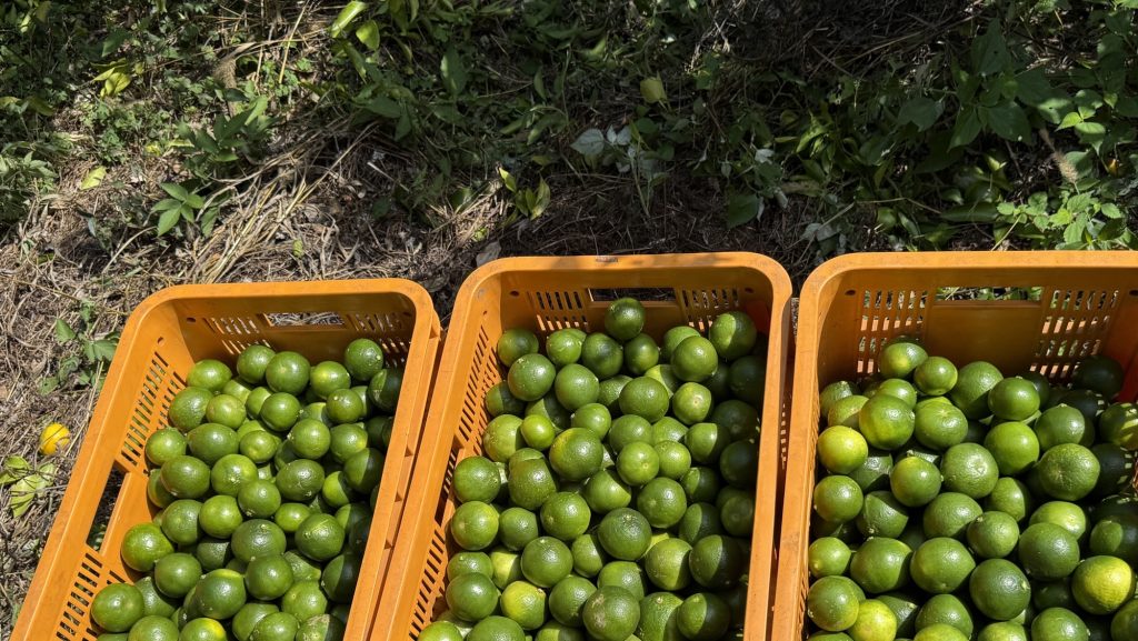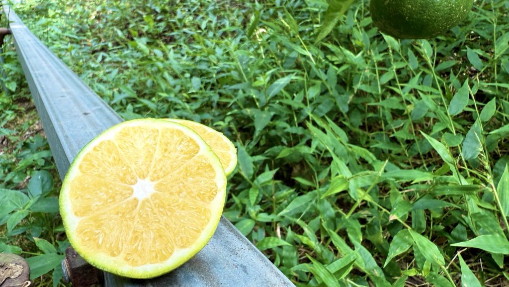 午後に収穫した清見タンゴールの摘果玉は、鮮やかな緑と爽やかな香りが特徴で、イベントや直売所での販売にも手応えを感じた。