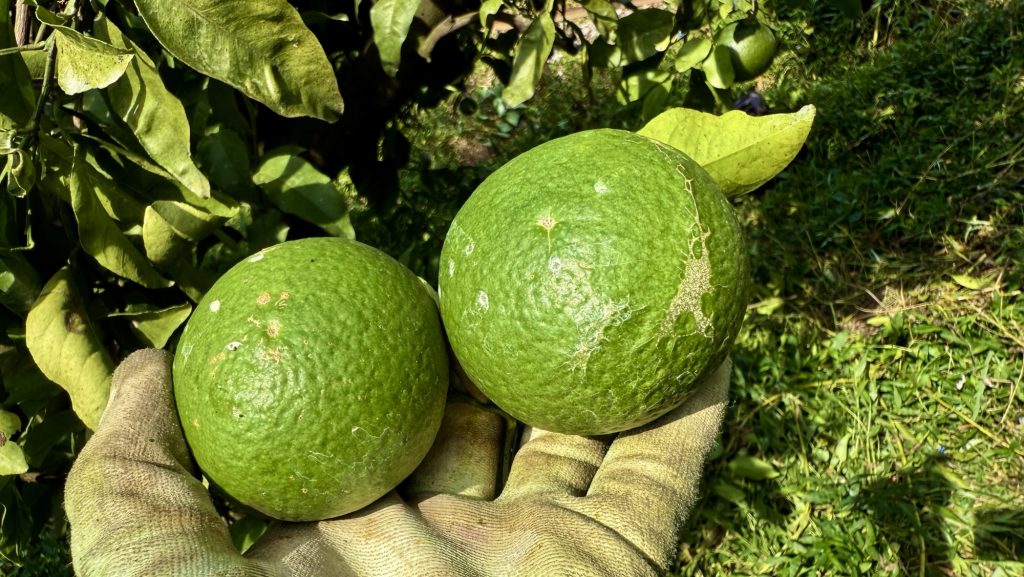 販売用果実の収穫タイミングを見極め、鮮度を保ちながら出荷できるよう準備を整える。