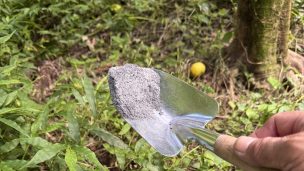 作業の中で、カタツムリの食害とみられる果実を確認。