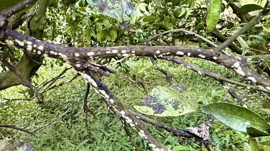 作業の途中でカイガラムシの発生も確認した。